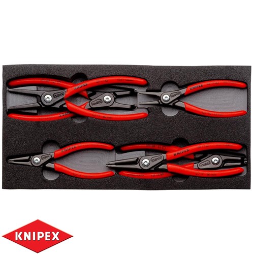 The Knipex 6 piece internal and external Circlip Pliers are created from forged, oil hardened chrome vanadium electric steel, with spring steel wire tips. The bolted joint supports precise movements, while the non-slip plastic coated handles insure optimum safety while in use.