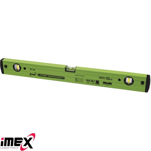 The IMEX Storm Professional series levels are built for durability and precision. These heavy-duty spirit levels feature high-accuracy vials and a rugged, double-ribbed reinforced box section, making them ideal for everyday use by professional tradesmen. Manufactured in Europe to IMEX's exacting standards, these levels are designed to withstand the harshest working environments. They include shockproof end caps for added durability. The levels boast high-accuracy 0.3mm/m vials and come with a 30-year vial guarantee. Finished in a distinctive epoxy IMEX green, these tools combine reliability with a professional look.