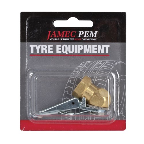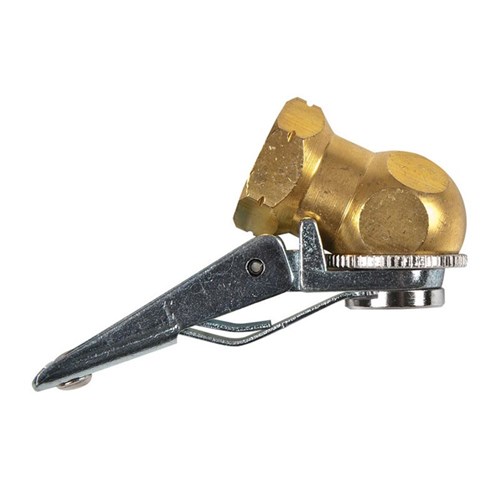 Angle Clip on Chuck. Features: Sealing Type Air Chucks employ a "check valve" which seals the chuck, closing the air passage while it is not being used, and when used, it will open the core on the tyre valve, allowing the pressure from the hose to be transferred to the tyre. When a "live" non-gauged airline is used for inflation of the tyre, a sealing air chuck should be used.