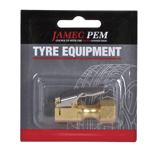 Straight Clip on Chuck Female. Features: Sealing Type Air Chucks employ a "check valve" which seals the chuck, closing the air passage while it is not being used, and when used, it will open the core on the tyre valve, allowing the pressure from the hose to be transferred to the tyre. When a "live" non-gauged airline is used for inflation of the tyre, a sealing air chuck should be used.