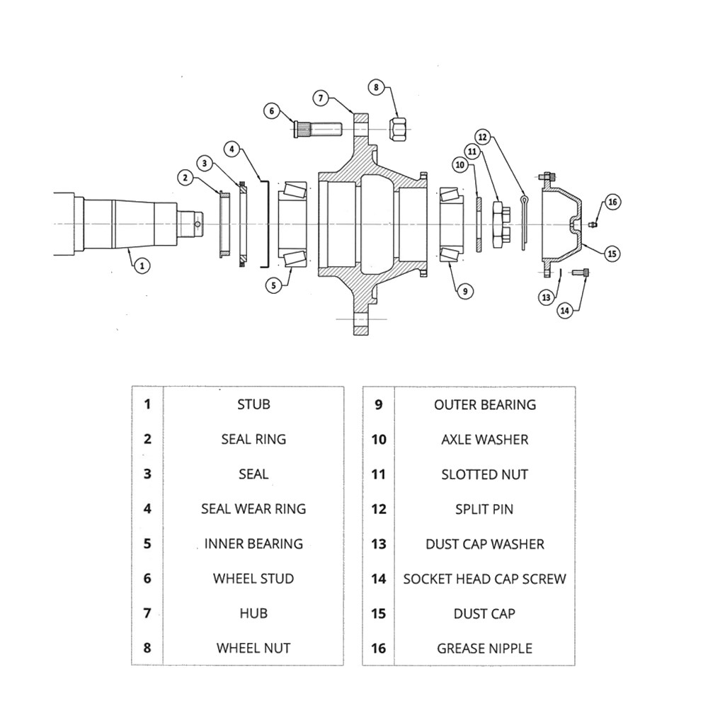 OTR-Titan® agricultural 110H-10 Series stub axles. This hub kit contains all of the components (stub not included) required to repair your hub-stub assembly and reduce your down time. Australian made stub axle designed for heavy duty off-highway agricultural and industrial trailer applications.