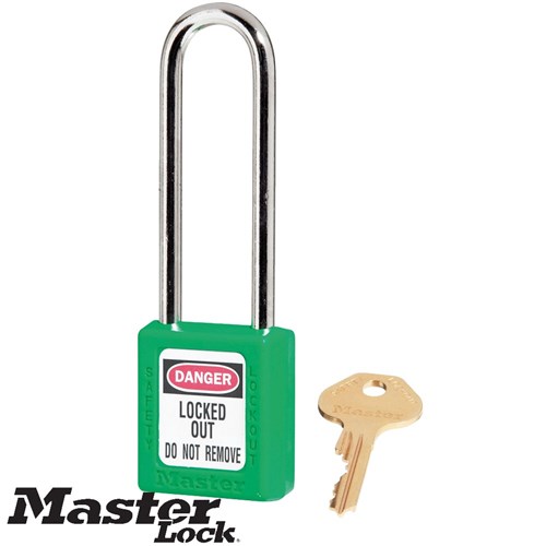 Master Lock Green Zenex™ Thermoplastic Safety Padlock, 1-1/2in (38mm)with 3in (76mm) Shackle
