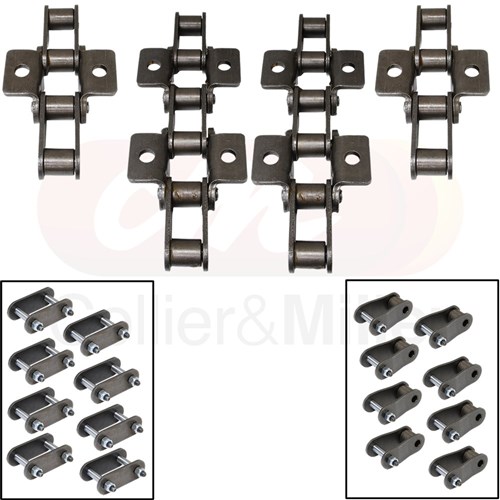 C&M feeder house repair service kit compatible with 4 chain John Deere® S6 , S7 and S7 XXX series combine harvesters. This service kit is supplied to assist repair of feeder chains, all components are chrome pin with solid bushings.