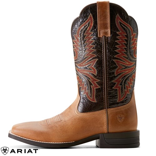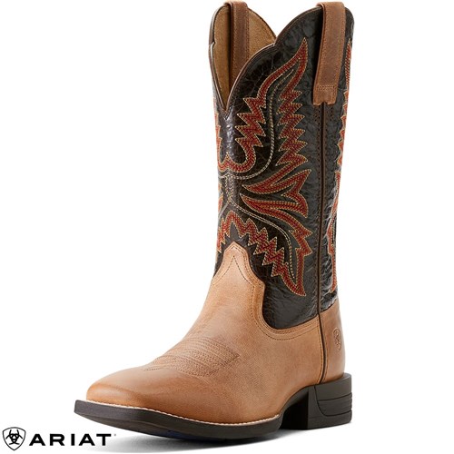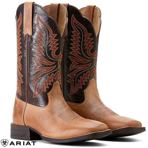 The Ariat Men's Brush Creek Boot combines classic cowboy style with advanced comfort technology for long days on your feet or in the saddle. Featuring Shock Shield® technology, these boots absorb heel impact to minimize fatigue, while ATS® technology provides ergonomic support on uneven terrain. The roomy wide square toe and removable Energy Max™ anti-fatigue insole ensure lasting comfort.