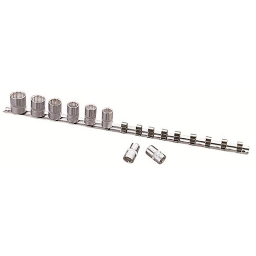 Supatool socket rail clip set. Suits 3/8" drive socket. Can be mounted in any location. Takes up to 15 sockets