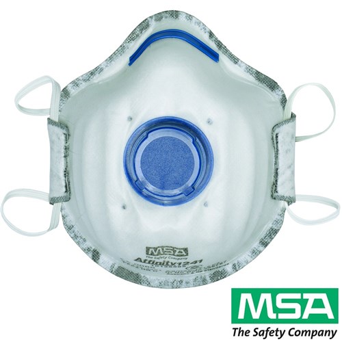 MSA Affinity 1241 P2 Respirator with Exhalation Valve and Odour Removal, Disposable Box of 10. Colour Coded Blue. Effective, reliable and economical, the cup-shaped Affinity 1200 series protects against most penetrating solid and liquid aerosol particles, depending on which class of ï¬lter issued. Protection Class P2 Applications include machining, welding, brazing, plastering and insulation installation. Certified to AS/NZS 1716:2012.