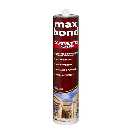 Fuller's Maxbond construction adhesive is ideal for bonding timber and most common construction materials including particle board, MDF board, brick, concrete, gypsum board, galvanized metal and aluminium. Maxbond construction adhesive is a synthetic rubber based adhesive designed primarily for installation of flooring and wall panels. Maxbond construction adhesive can be used in many general household applications.