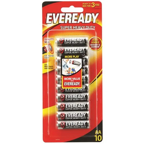 EVEREADY Super Heavy Duty is the affordable Carbon Zinc solution that provides power for your basic power needs. EVEREADY Super Heavy Duty brand offers a complete line of AA, AAA, C, D, 9v and 6v lantern batteries and are an economical choice for clocks, flashlights, radios and other devices that are low drain.