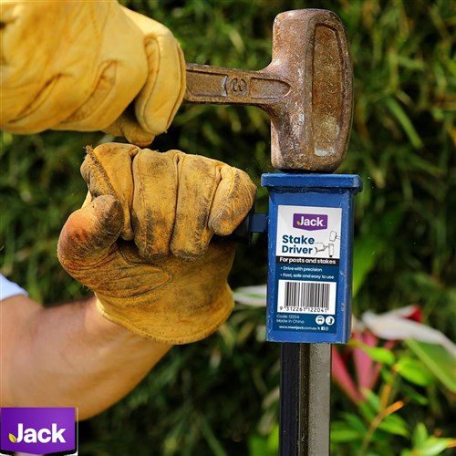 The Jack Stake Driver from Whites Rural is the safe, simple, and efficient way to drive timber, plastic, or steel stakes into the ground. Designed with a strong steel body and comfortable rubber-grip handle, it saves your fingers while protecting the tops of stakes from accidental damage. Just place it over the stake and strike with a hammer or mallet for precise, controlled driving every time. Perfect for garden and home use with Jack Garden Posts or plant stakes.