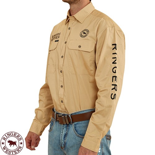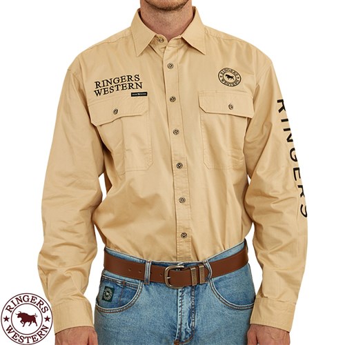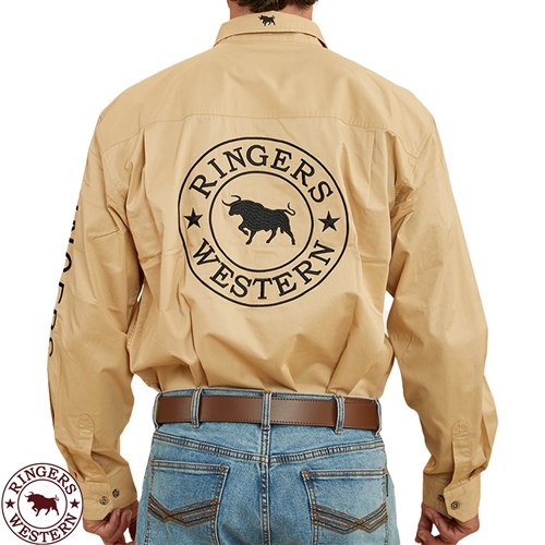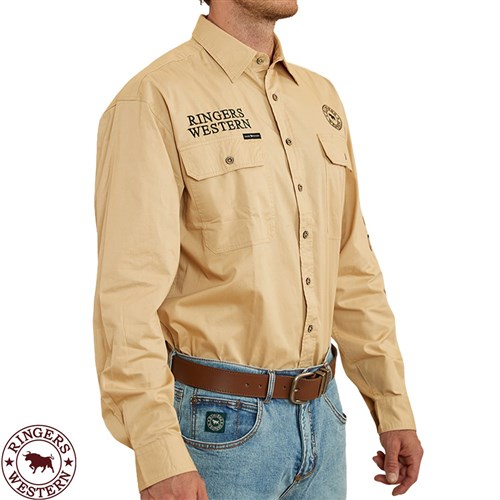 This shirt features signature Ringers Western embroidery, including a large logo on the back and multiple smaller logos on the chest and sleeve. Thoughtfully designed, it includes double breast pockets, spacious enough to accommodate plus-sized phones, and is pre-shrunk to minimize shrinkage.