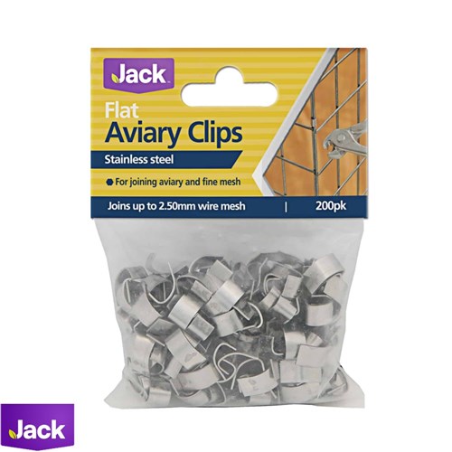 Jack Flat Aviary Clips from Whites Rural provide a strong, secure, and bird-safe way to join aviary mesh and wire. With a smooth flat profile, they offer greater holding power while reducing the risk of injury to birds and pets. Made tough for lasting performance, these clips are perfect for building or repairing aviaries, cages, and small enclosures. Supplied in a handy pack of 200 with bonus stainless steel clips included.