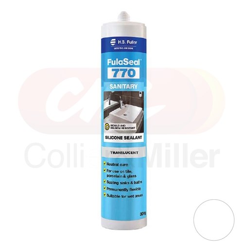 FulaSeal™ 770 Sanitary Silicone Sealant is a premium quality, 100% silicone sealant specifically designed for use in wet areas where a neutral cure sealant is required that contains a mould and mildew inhibitor. FulaSeal™ 770 Sanitary Silicone a professional quality wet area sealant that provides excellent adhesion and is suitable for contact with aluminium shower screens and other substrates susceptible to corrosion.