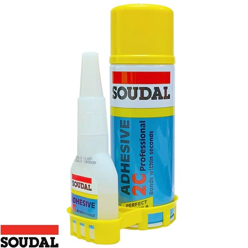 Soudal 2C Adhesive is a two-part system featuring a high-viscosity cyanoacrylate adhesive and an aerosol activator. This powerful adhesive offers high bond strength and rapid bonding, making it ideal for use on vertical surfaces without dripping or slumping.
