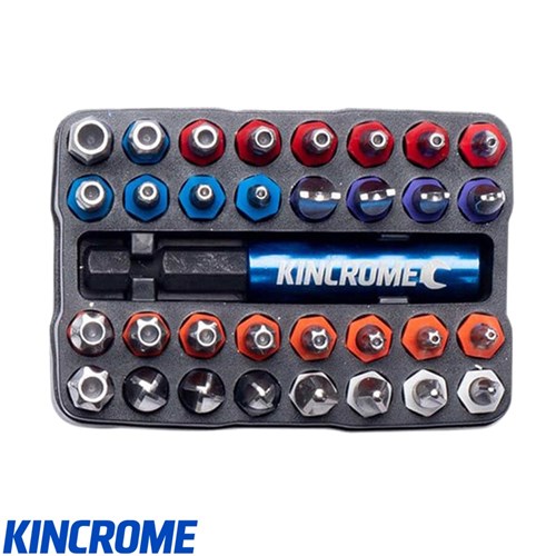 Kincrome has expanded the range of 33pc Bit Sets which now includes Security, General, Mechanics and Torx & Hex Bit Sets! With a newly designed case to help stand out, Bits made from S2 Cr-V Steel which are hardened & tempered with a chrome-plated finish and handy colour identification rings, plus a brass Bit Holder with Cr-V Steel shaft and a Blue anodized finish. The Kincrome Bit & Holder Sets are complete with 32 bits for any trade or DIY application.