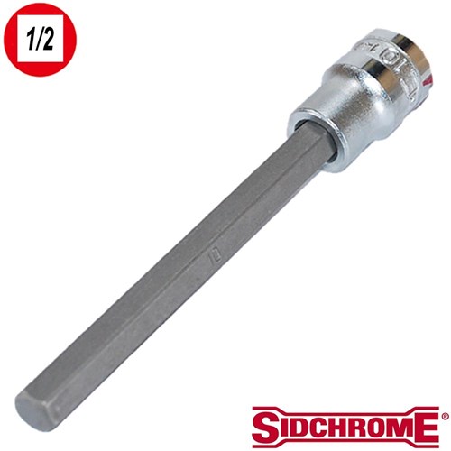 Sidchrome 1/2" Square Drive IN-Hex Socket. Designed to work on hex-drive (socket head) fasteners. Manufactured to meet or exceed relevant ASME and DIN international quality standards.