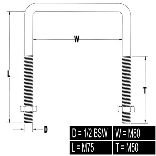 U-BOLT SQ TOP 1/2BSWX75X80