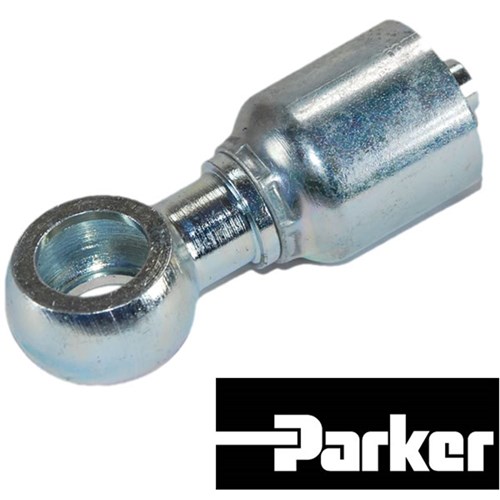 Hydraulic Crimp Hose End. DIN Metric Banjo one to 43 Series Parkrimp fittings. Use with 100R1AT, 100R2AT, 100R16, 100R19, 100R17,EN857-2SC,100R67