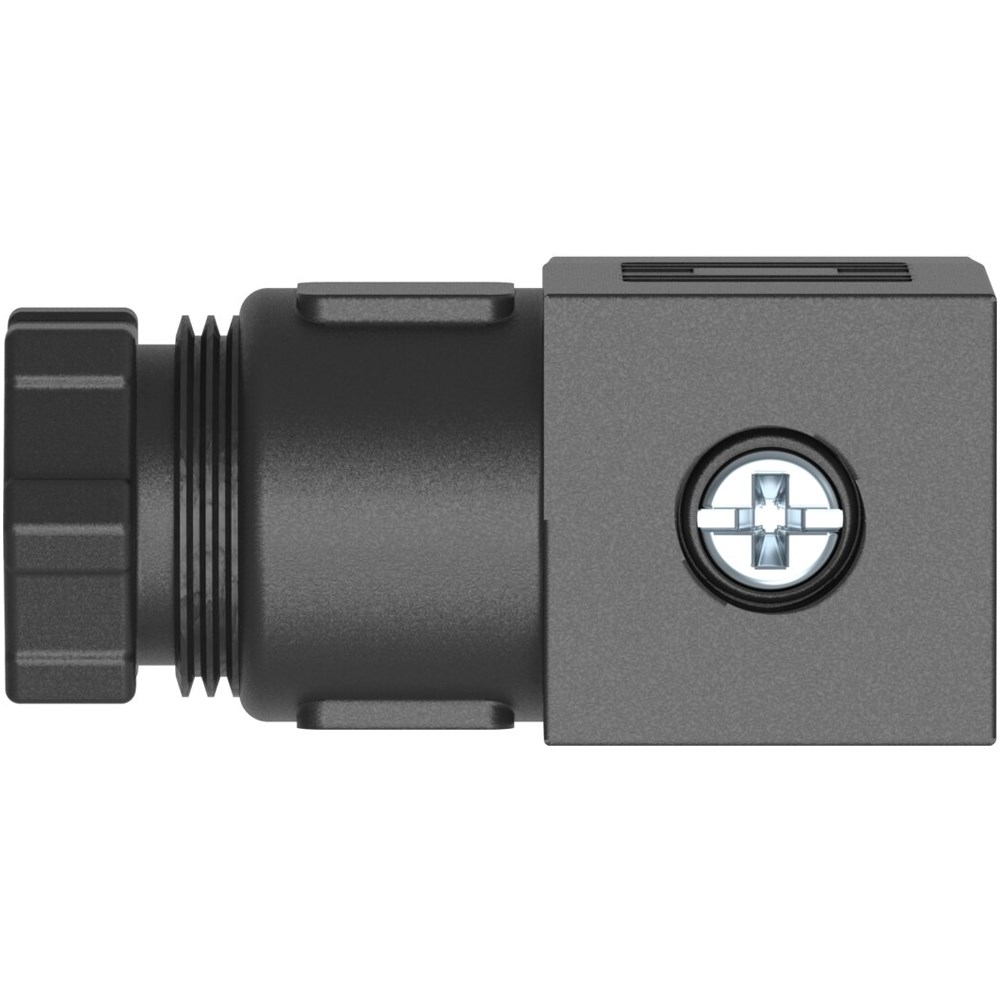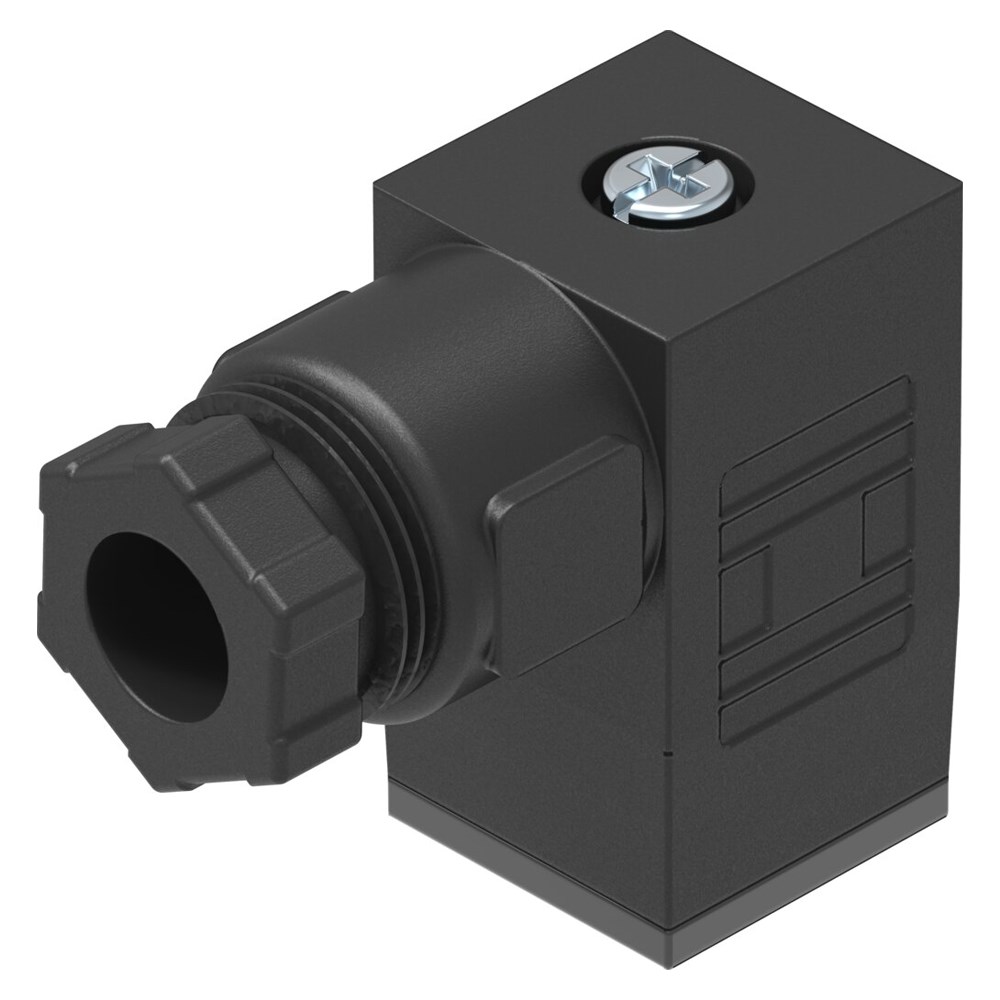 A compact and reliable electrical connection solution designed for Festo F7 armature valves. The MSSD-EB 3-pin socket features an angled, rotatable cable outlet for flexible installation, ensuring a secure and durable connection even in demanding industrial environments. Built with a robust polymer housing and rated to IP65 when assembled, it provides excellent protection against dust and moisture while supporting both AC and DC operating voltages.