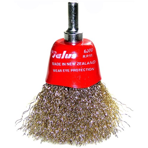 60mm crimped wire brush (cup shape) with 1/4" shank. Ideal for use n a battery drill. Cannot be used on high speed tools such as die grinders.