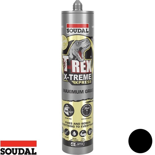 Soudal T-Rex X-Treme is a high-quality, neutral, elastic adhesive sealant designed for extreme bonding performance. Utilizing Soudal's unique SMX Polymer technology, it offers an exceptionally high initial tack of 400 kg/m², allowing for immediate bonding of very heavy materials without additional support.