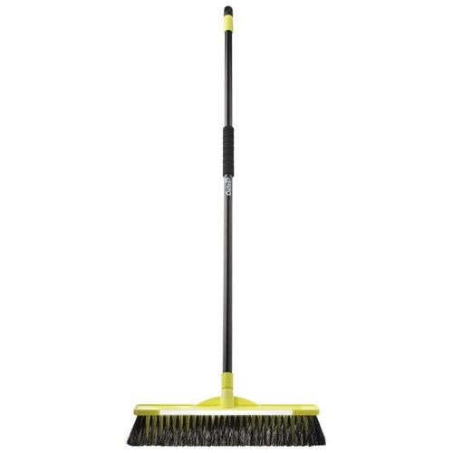 Ideal for use on bricks, concrete, timber, roads & paths. Effectively collects small & medium size particles. HIVIS. Ergonomic 25mm handle.