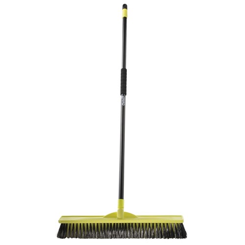 Ideal for use on bricks, concrete, timber, roads & paths. Effectively collects small & medium size particles. HIVIS. Ergonomic 25mm handle.