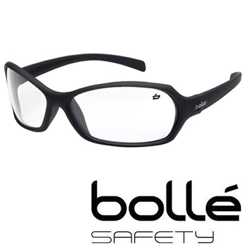 Bolle 'Hurricane' safety spectacle features a black frame with clear coated lens. This 26 Gram spectacle has a generaous fit for medium and large applications.