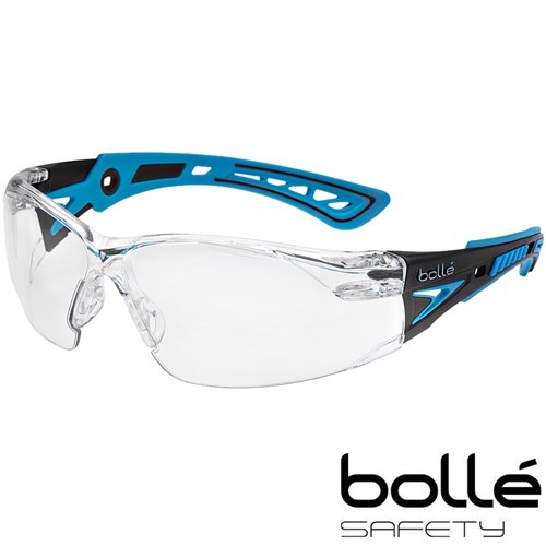 Bolle 'Rush Plus' Small Ultra light-weight safety spectacle, Clear Lens. These Safety Spectacles adopt all the features of the popular Rush Plus model just in a smaller fit. An ultra-sporty design with its co-injected and ultra-flexible temples. Feature adjustable PVC nose bridge and an anti-fog / anti-scratch coating system.