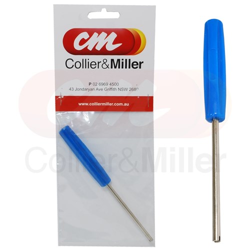 This long valve tool core remover has a plastic grip handle with a handy 75mm nickle plated extended shaft.