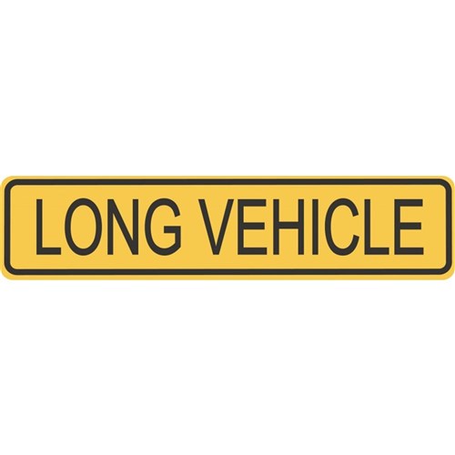 Aluminium 'long vehicle' sign. Yellow background with black text.
