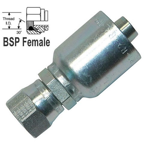 Hydraulic Crimp Hose End. Female BSPP swivel 60 Degree cone one to 43 Series Parkrimp fittings. Use with 100R1AT, 100R2AT, 100R16, 100R19, 100R17,EN857-2SC,100R91