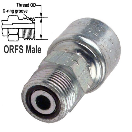 Hydraulic Crimp hose end. Male ORFS rigid with O-ring, one piece. ISO12151-1-S. Use with 100R1AT, 100R2AT, 100R16, 100R19, 100R17,EN857-2SC,100R12