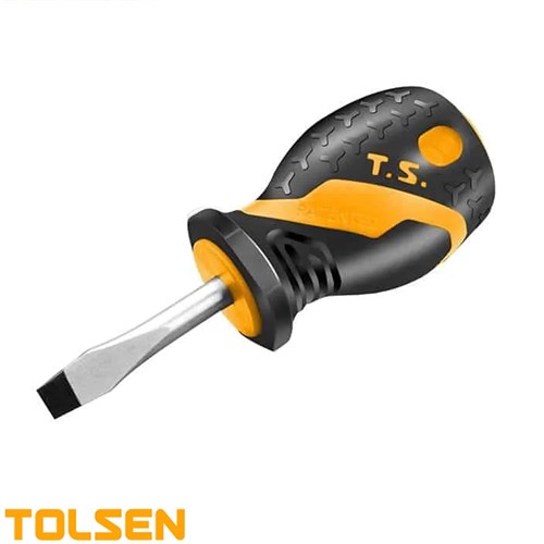 Compact and powerful, the Tolsen Stubby Screwdriver is made from durable CrV steel with a two-component comfortable grip for easy handling in tight spaces. Its black finish magnetic tip ensures precise screw holding, making it perfect for detailed or confined work. Packaged on a plastic hanger with a color box for neat presentation.