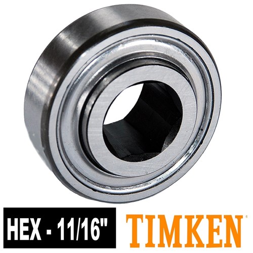 Timken hex bore bearings for use in agricultural and conveyor applications. R-Seal radial ball bearings are used in positions in planting, cultivating and harvesting machinery.
