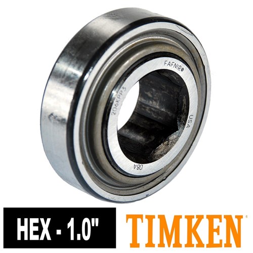 Timken hex bore bearings for use in agricultural and conveyor applications. Tri-Ply sealed radial ball bearings are used where heavy contamination can occur in planting, cultivating and harvesting machinery.