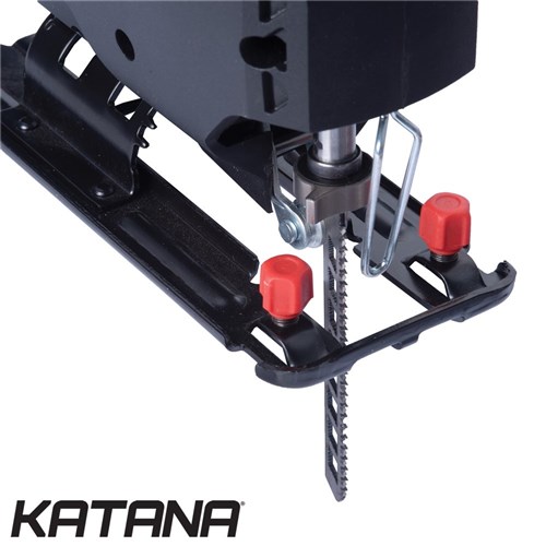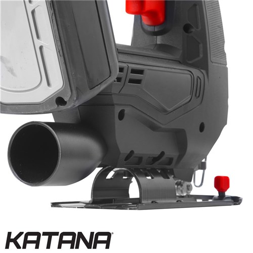 Featuring an adjustable base plate that provides cutting angles of 0, 15, 30 and 45 Degree, a 3 level pendulum cutting action that provides a more aggressive and efficient cut, a dust blower and extractor to remove sawdust and debris , an LED work light to ensure you have 100% visibility of the cutting surface at all times and a quick change toolless blade change mechanism. The Katana Jigsaw will help you tackle any cutting jobs with precision and efficiency.