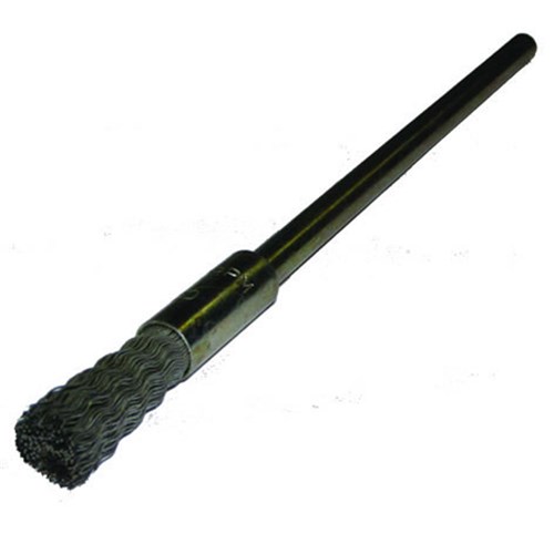 This 8mm flat end crimped wire brush has a 1'4 shank. Ideal for use in a cordless drill.