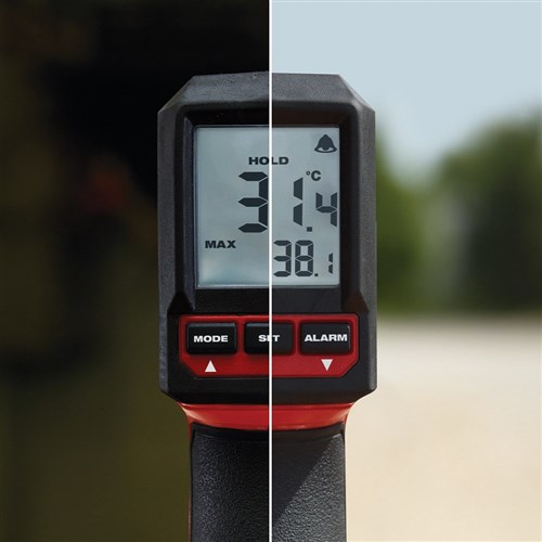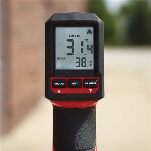 The MILWAUKEE Infrared Temp-Gun combines a crystal-clear display with fast, accurate scanning, making it ideal for any environment. With a wide measurement range from -5⁰C to 550⁰C, a 12:1 distance-to-spot ratio, and user-configurable High/Low alerts, this tool is perfect for professional, residential, and industrial applications. The rugged design features a fully bumpered nose, shielded LCD, and 7-point reinforced frame, ensuring durability and drop resistance up to 1.8 meters. Equipped with Hold, Max, Min, Avg, and Diff modes, the Temp-Gun is easy to use with clear button functions and quick setup.