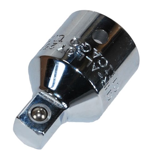 T & E Tools 3/4" Female to 1/2" Male socket adaptor. Adapters allow for sockets from other drives to be used on non-corresponding ratchet handles. Perfect if you have multiple ranges of sockets and only one or two ratchet handles. Chrome vanadium steel, hardened, tempered, chrome plated and polished for corrosion protection.