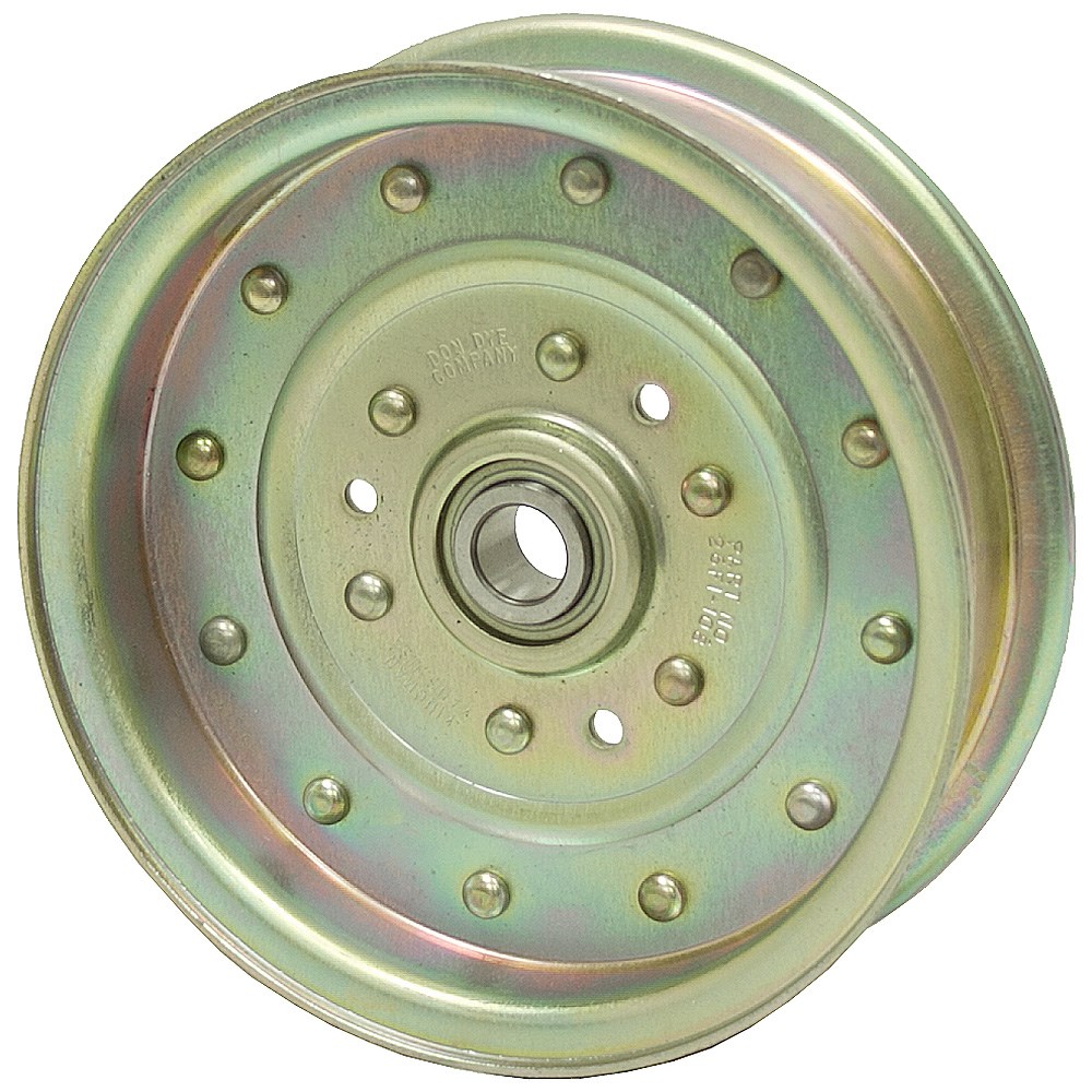 Don Dye pressed steel pulleys are designed to make a complete, economical, self contained unit for either flat or "V" side of belt. They are furnished with a single-row, radial-type, highest quality precision ground, pre-lubricated ball bearing (made of 52100 bearing steel) with contact-type seals to insure positive retention of lubricant and full protection against dirt, dust or foreign matter. These bearings contain a 60% fill of high temperature grease, no re-lubrication required.