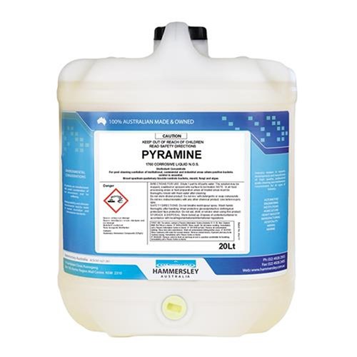 - Concentrated formula – Effective in very low concentrations. Just a few millilitres makes many litres of powerful germicidal solution. Pyramine and its solutions are very stable and may be pre-diluted and stored for use when required