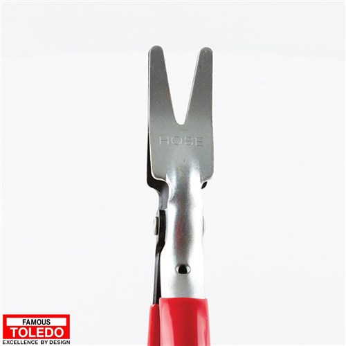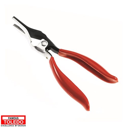 The Toledo Fuel/Vacuum Line Plier is your go-to tool for quickly and safely removing stubborn fuel and vacuum hoses without damaging surrounding components. Designed with a sharp “V” jaw for a secure grip and a convenient spring return for smooth operation, this plier makes hose removal effortless. Built from chrome-treated alloy steel and fitted with PVC-dipped handles for comfort, it’s ideal for hoses ranging from 3–13mm.