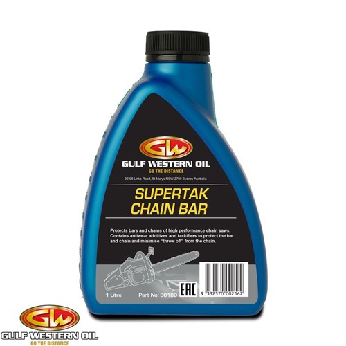 Gulf Western Supertak Chain Bar Oil is a high-performance lubricant designed for chainsaws and bar systems. Formulated with premium base oils and an ultra-tacky additive package, it provides superior lubrication, reduces wear, and minimizes sling-off during high-speed operation. Ideal for professional loggers and contractors, this oil ensures optimal performance and long-lasting equipment protection.