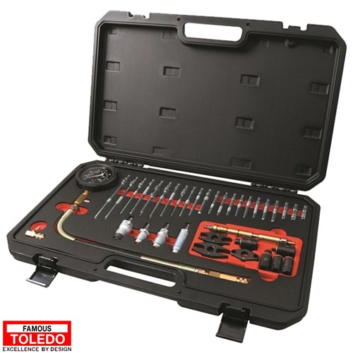 The Toledo Diesel Master Compression Tester Kit 1000 PSI is a professional compression tester kit for problems related to diesel engines. The kit provides assistance in checking high pressure automotive, commercial and heavy industrial applications. Kit is supplied in a blow mould storage case.