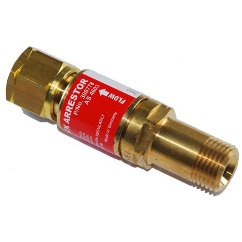 Designed for connection to the inlet of blowpipes in medium flow applications. Non-return valve. Cylindrical stainless steel flame arrestor. Supplied with an inlet filter. Complies to AS4603. Conforms to EN730/DIN 8521, UL, ISO 5175 class I (fittings to AS4267-1995). Tested by BAM.