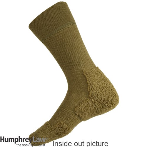 These ‘Feet First’ Socks were especially designed for wearing with steel capped boots. They have thick wool padding under the sole, high on the heel, and importantly above the toe to provide additional protection from the steel cap. The thick padding on the sole also insulates the foot from hot and cold surfaces. Heels and toes are nylon reinforced for longer wear. The lighter weight leg and arch provide coolness and elastic knitted into the arch and ankle prevent the sock slipping into the boot.