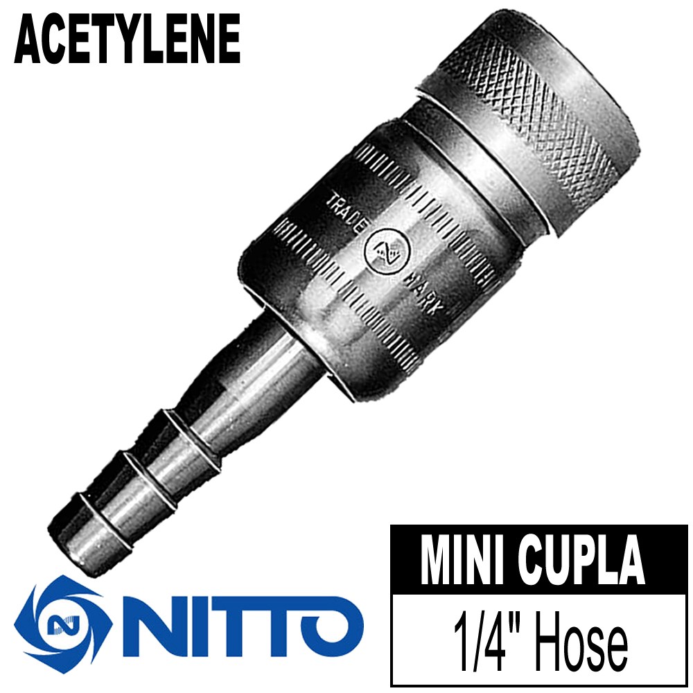 The Nitto Mini-Cupla has been designed for specific Oxygen /Acetylene aplications. Designed for connection of gashoses to regulators, torches and all piping.