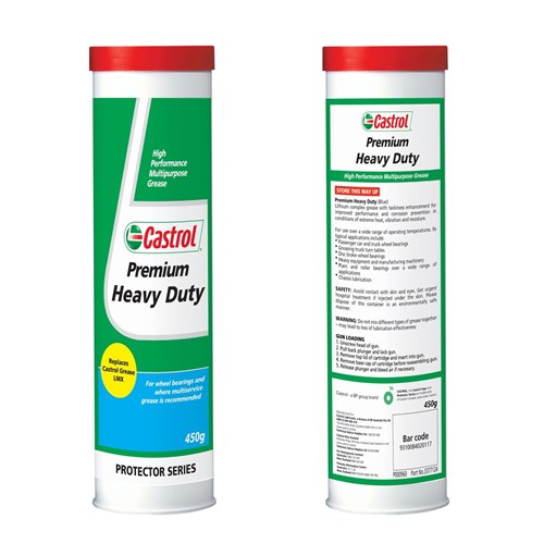 Castrol Premium Heavy Duty grease is Lithium Complex formula that is suitable for awide variety of greasing applications. This product canbe used in low and high temperature environments. Great all round grease for bearings, wheel bearing and bushes pins it will resist water washout.