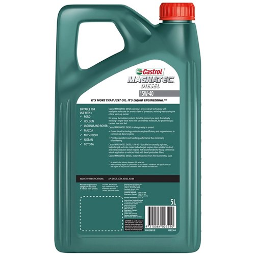 Castrol Magnatec Diesel is a semi-synthetic engine oil engineered to optimize diesel performance. Infused with Intelligent Molecules, it forms a robust shield, especially vital during the crucial warm-up phase, reducing wear on critical engine components.