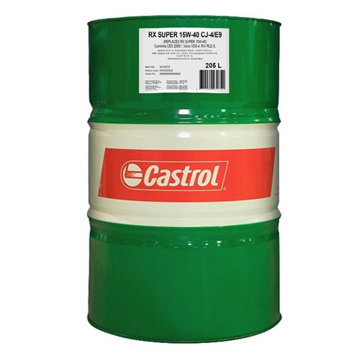 Castrol RX SUPER 15W-40 CJ-4/E9 is an advanced, heavy duty diesel engine oil.  It is suitable for use in high speed 4- stroke diesel engines that use a broad range of  fuel qualities. It is compatible with diesel engines fitted with EGR and the latest exhaust after treatment systems such as; DPF, DOC and/or SCR.